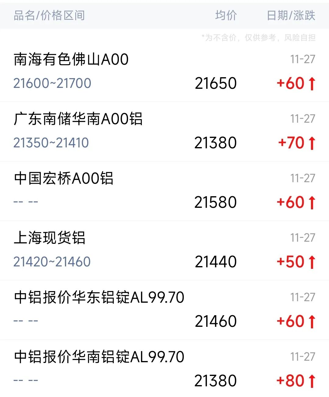 27日南海有色铝21600~21700均价21650涨60威海期货配资,不含20140~20240均价20190涨60