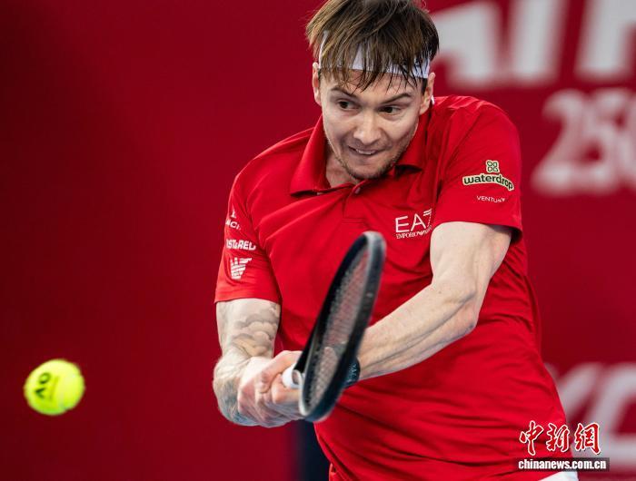 1月11日,ATP(男子职业网球协会)250级别比赛香港公开赛决赛在香港维多利亚公园网球场举行。男单决赛中,哈萨克斯坦选手亚历山大·布勃利克(Alexander Bublik)2:0战胜意大利选手洛伦佐·穆塞蒂(Lorenzo Musetti),获得冠军。图为布勃利克在决赛中回球。中新社记者 侯宇 摄