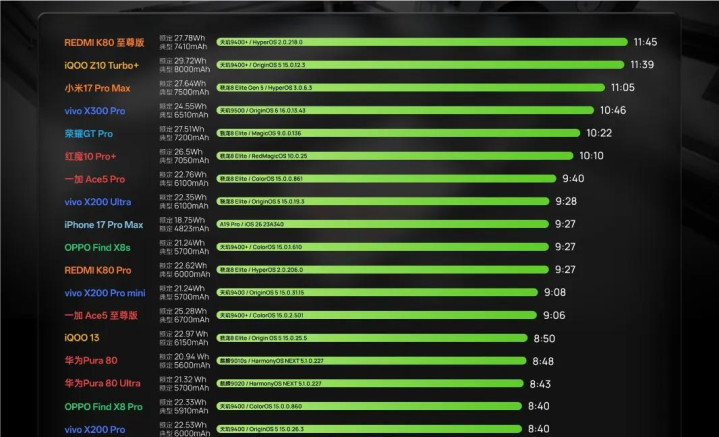 据第三方评测,小米17 Pro Max续航表现还是非常优秀的。