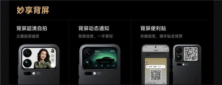 背面则采用后置大矩阵镜头设计,配备三摄影像系统。并且搭载副屏,官方称其为“妙享背屏”。